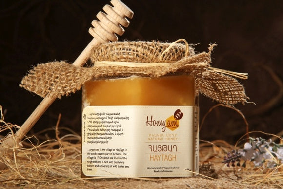 Haytagh natural honey is produced in the village of Haytagh in the south-eastern part of Armenia. The village is 1710m above sea level and the neighborhood is rich with Cephalaria flowers and a diversity of wild bushes and trees.