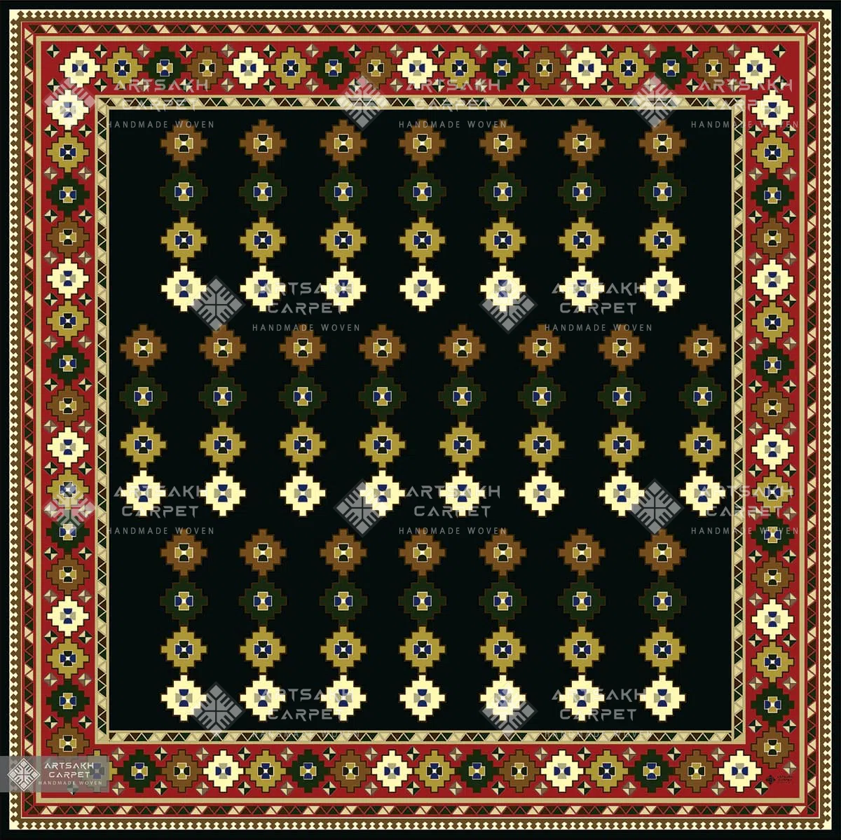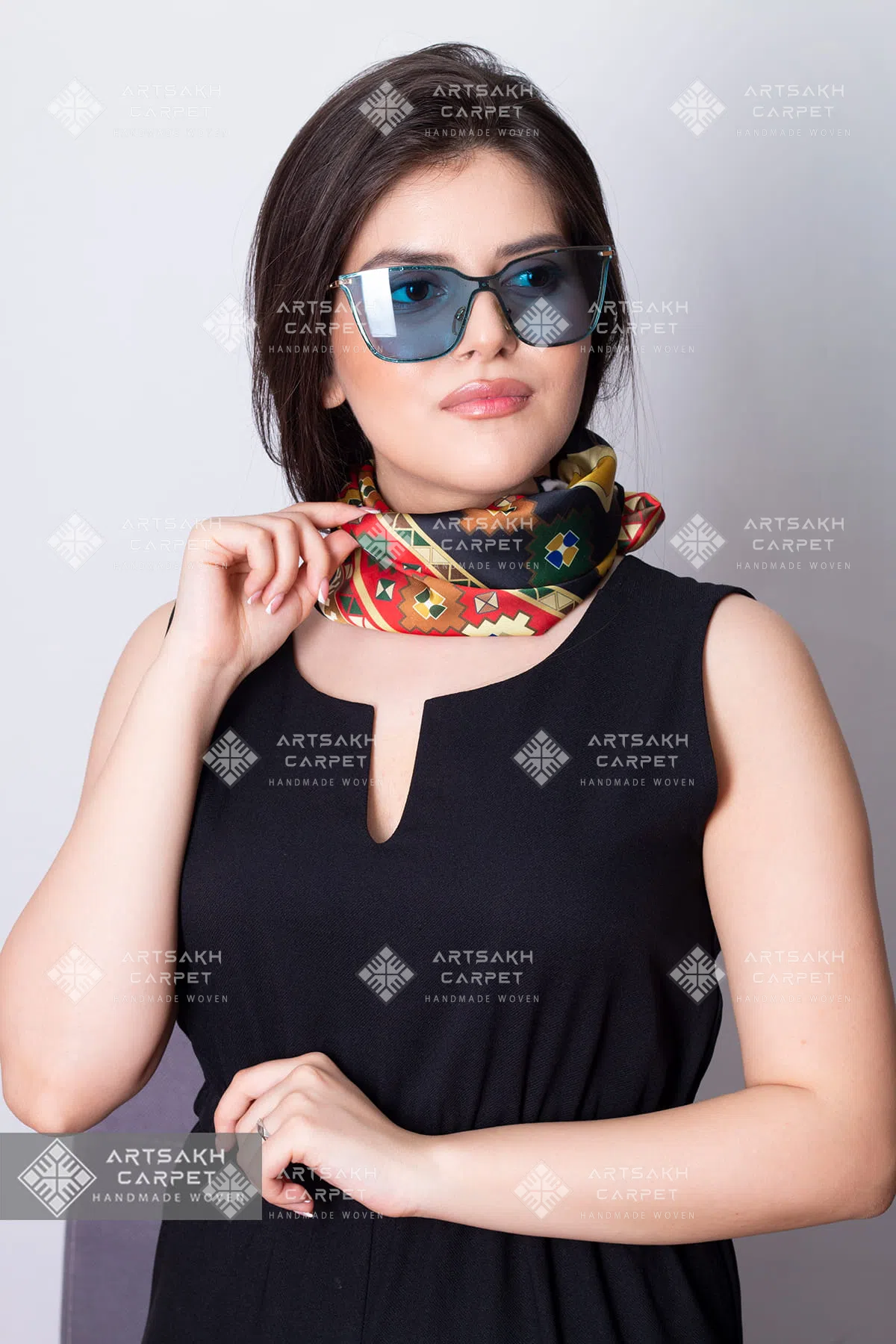 SILK SCARF WITH ARMENIAN ORNAMENT / SQUARE 018 / FREE DELIVERY