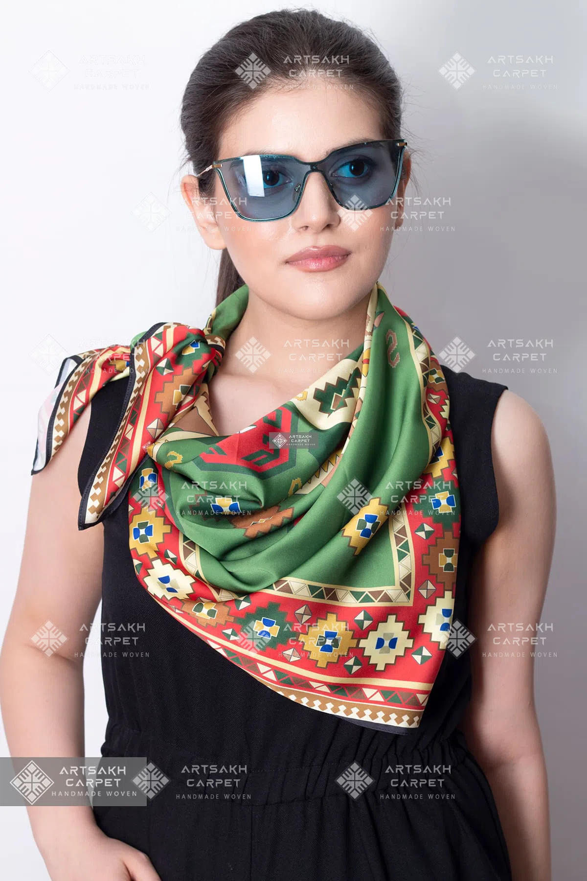 SILK SCARF WITH ARMENIAN ORNAMENT / SQUARE 010 / FREE DELIVERY