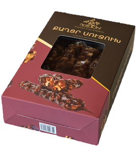 Armenian sweet sujukh (threaded walnuts dipped in thickened grape juice) from Pokr Vedi, Ararat Region, Armenia.