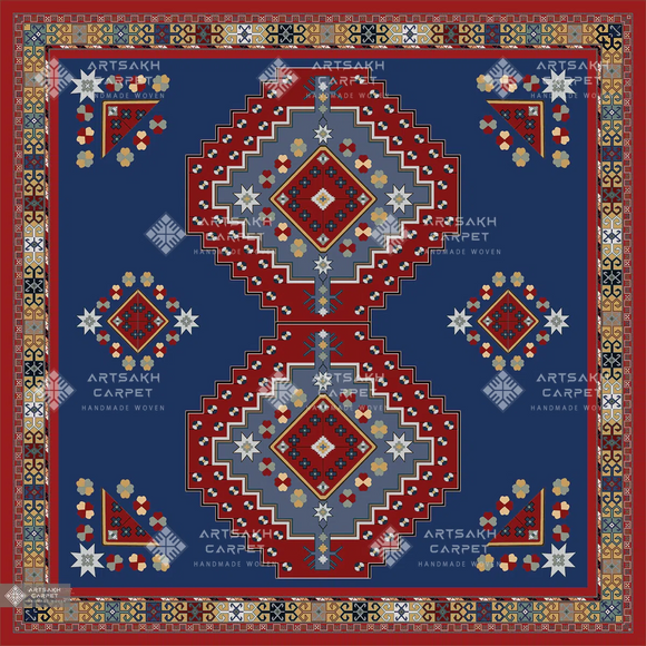 SILK SCARF WITH ARMENIAN ORNAMENT / SQUARE 020 / FREE DELIVERY
